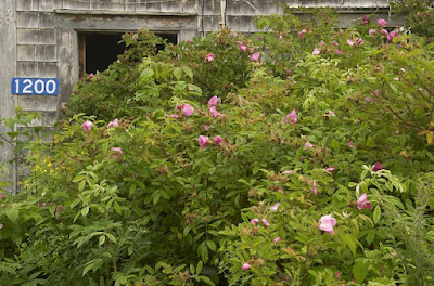 When I got to Pettes Cove, the fog was thick, and it was raining. The cove itself was dreary, but I got out of the car just long enough to photograph some grass just beside the car. I like the image in quite a bit in colour, but it really looks good in black-and-white -- the photograph is pure texture.